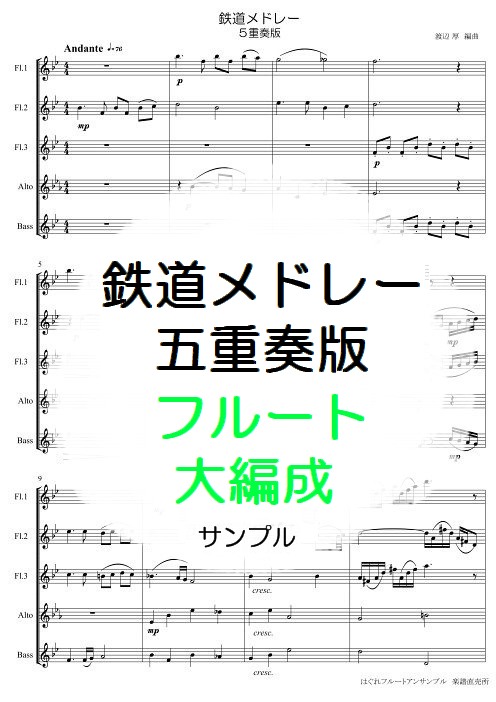 鉄道メドレー 5重奏版 ¥1,000(税込) 汽車ぽっぽ(草川信) 鉄道唱歌(多梅稚) 汽車(大和田愛羅) 汽車ポッポ(本居長世) 線路はつづくよどこまでも |